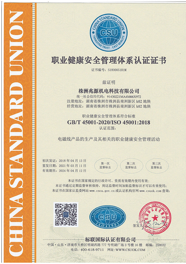 職業(yè)健康安全管理體系認證證書