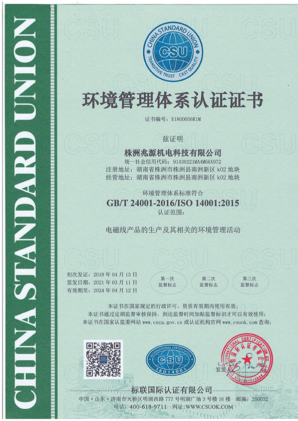 環(huán)境管理體系認證證書